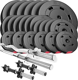 Hop-Sport Hantelset 75 kg 1x Langhantel-Stange, 1x SZ Curl-Stange, 2X Kurzhanteln, Gewichte 2x10kg / 4x5kg / 4x2,5kg / 6x1,25kg