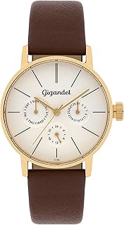 Damen-Armbanduhr Multifunktion Quarz Analog mit Lederarmband braun G38-003