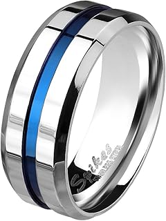 Herren Band Ring Bandring Edelstahl poliert Zwei Ton Silber mit blauen Inlay