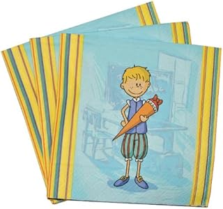 alles-meine.de GmbH 20 STK. Servietten - Jungen Schulanfang Party Schuleinführung Schule Kinderparty blau Schultüte Zuckertüte