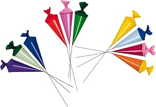 alles-meine.de GmbH 6 STK. Schultüte - 12 cm - mit Stiel - rund - Geschenktüte klein Dekoration - Zuckertüte Deko für Schulanfang Dekotüten 12cm - Blumenstrauß Tischdeko Dekorati