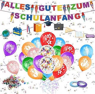 Schuleinführung Schulanfang Deko Set für Jungs Mädchen,Einschulung Deko,Alles Gute Zum Schulanfang Banner + Luftballon mit ABC 123 Schultüte Motiv + Konfetti + Folienballon