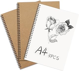3 STK A4 Leerseite Notizheft, Kraft Cover Spirale Skizzenblock, 100 Seiten / 50 Blatt Zeichenblock Gut für Memos, Malen und Graffiti