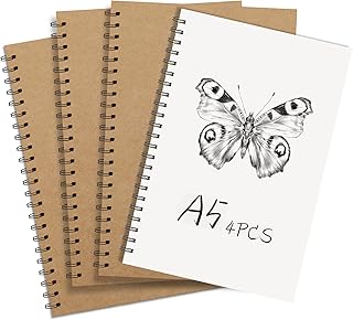 4 STK Spirale Skizzenblock, A5 Kraft Cover Leerseite Notizheft, 100 Seiten / 50 Blatt Dickes Beiges Papier Zeichenblock Gut für Malen und Graffiti