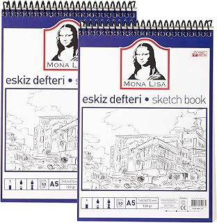 Monalisa Zeichenblock Set (2 Stück) DIN-A5 50 Blatt Sketchbook mit Spiralbindung 120 g/m² weißes Papier für Zeichnungen, (14,8 x 21,0 cm) mit 100 Seiten Zeichenpapier