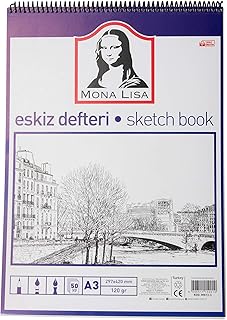 Monalisa Zeichenblock DIN-A3 50 Blatt, Sketchbook mit Spiralbindung 120 g/m² weißes Papier für Zeichnungen, (29,7 x 42,0 cm) mit 100 Seiten Zeichenpapier…