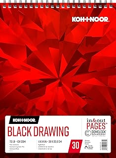 Koh-I-Noor 26170221312 Zeichenblock, mit In- und Out-Seiten bedruckt, 104 g/m², 27,9 x 35,6 cm, mit Spiralbindung, 30 Blatt pro Block, je 1 Stück 11 x 14 Inches schwarz