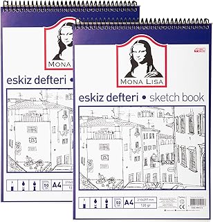 Monalisa Zeichenblock Set (2 Stück), DIN-A4 50 Blatt, Sketchbook mit Spiralbindung 120 g/m² weißes Papier für Zeichnungen, (21,0 x 29,7 cm) mit 100 Seiten Zeichenpapier…