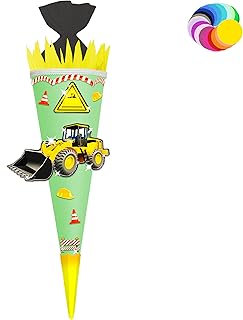 alles-meine.de GmbH Bastelset - Schultüte _ Farbe & Größe wählbar _ 70 / 85 / 100 cm - Bagger - Baustelle Bastelschultüte - Zuckertüte zum selber Basteln Bemalen ..