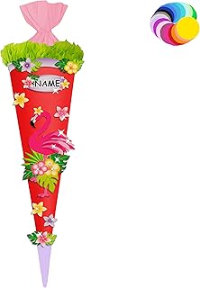 alles-meine.de GmbH Bastelset - Schultüte _ Farbe & Größe wählbar _ 70 / 85 / 100 cm - lustiger Flamingo - inkl. Name Bastelschultüte - Zuckertüte zum selber Bast..
