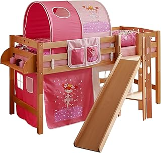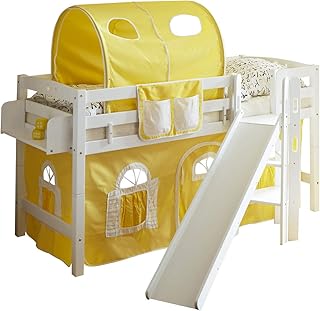 Homeline Timo Weiss Kinderbett Hochbett mit rutsche Leiter Hochbett Spielbett Kiefer Massiv