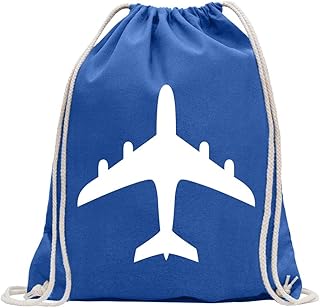 Kiwistar - Flugzeug Turnbeutel Fun Rucksack Sport Beutel Gymsack Baumwolle mit Ziehgurt