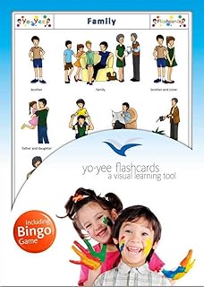 Family Flashcards in English - Flash Cards with Matching Bingo Game in One Set - Vocabulary Picture Cards for Babies, Toddlers, Kids and Children - Size 4.13 × 5.83 in - DIN A6