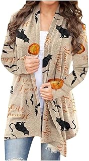Damen Langarmshirt Lang Strickjacke Langarm Mantel Casual Lose Sweatshirt mit Halloween Print Jackenoberteil Leicht Atmungsaktiv Hemd Tops Oversize Halloween Kostüm