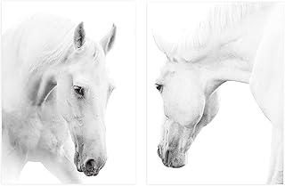 Homdeco Pferde Poster 2er Set,Schwarz Weiß Wand-Poster,Moderne Premium Poster Set,Weiß Pferde Bilder für Wohnzimmer,Tier Wanddeko,30×40CM,ohne Rahmen