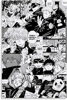 RUIQIU Jujutsu Kaisen Poster Pop Manga schwarz und weiß Leinwand Poster Wandkunst Druck Geschenk Bild Gemälde Poster Kunstwerk Home Decor Gerahmt 50 x 75 cm