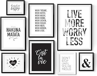 8er Poster Set in verschiedenen Größen! 10x15, 13x18, A4 und A3. Wanddeko von MARELLE. Beste Poster, Wandbild, Spruchbilder, schwarz weiß, Geschenk, Gallery Wall, Komplett Set 2570