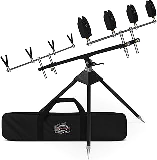 normani Rutenhalter Ruten-Set Rutenauflage Rod Pod mit Bissanzeiger und V-Auflage Rutenständer aus Aluminium für 4 Ruten mit Teleskopfüßen Angel-Ständer mit Transporttasche