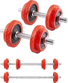 HOMCOM Hantelset 20/30KGS 2-IN-1 Hanteln&Langhanteln verstellbar Gewichtheben für Zuhause Fitness Muskel Stahl PP-Kunsstoff Eisen Sand Rot+Schwarz 21,5 x 21,5 x 3,8 cm