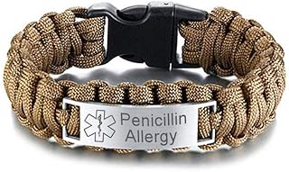 LF Free Gravur Custom Medical Alert Geflochten Paracord Armband Penicillin Allergie Krankheit ID Armreif für Frauen Männer Überleben Wandern Camping Im Freien Aktivitäten Notfall Lebensretter,23 cm