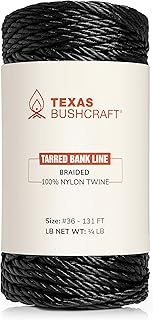Texas Bushcraft Tarred Bankschnur Schnur - #36 Schwarze Nylonschnur zum Angeln, Camping und Überleben im Freien - Starke, wetterfeste Bankline-Seil für Trotline