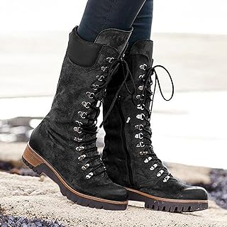 Damen Stiefeletten Lauschig Overknee Stiefel mit Niedrige Absätze Comfort Riemchen Frauen Ankle Boots Bootie Herbst Winter Stiefel Worker Boots Schneestiefel Damen Schuhe Stiefelette Knöchel Schuhe