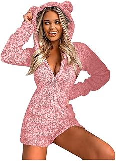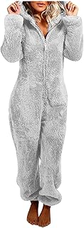 Damen Jumpsuit Fleece Zip Onesie Jumpsuit flauschig und kuschelig weich warm One Piece Pyjamas Jumpsuits