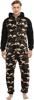 Nachtwäsche Herren Warm Fleece Overall Pyjama Langarm Einteiler Hoodies Schlafanzug Einteiler Winter Thermo Homewear Schlafoverall Jumpsuit Onesie mit Kapuze Hausanzug Jumpsuit Strampler